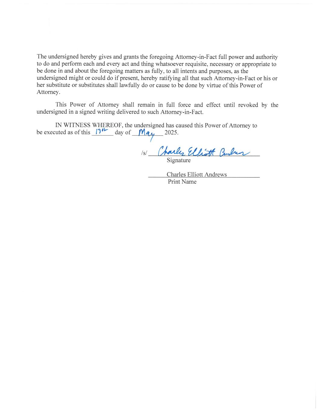 | /s/ Harold Herman, Attorney-In-Fact | 05/15/2025 | |