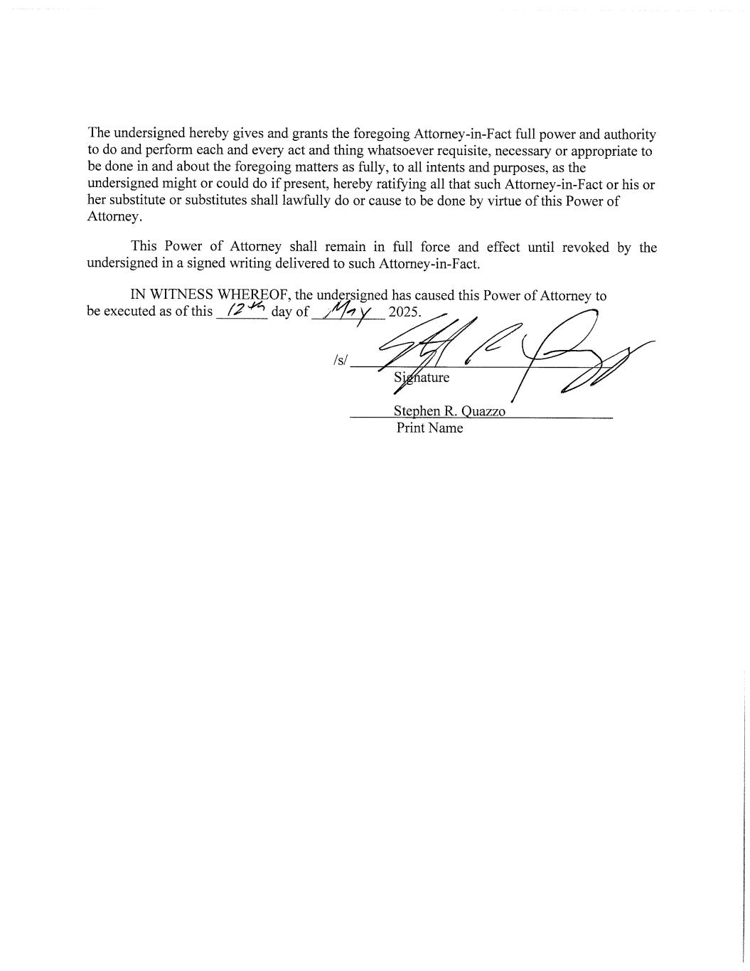 | /s/ Harold Herman, Attorney-In-Fact | 05/15/2025 | |