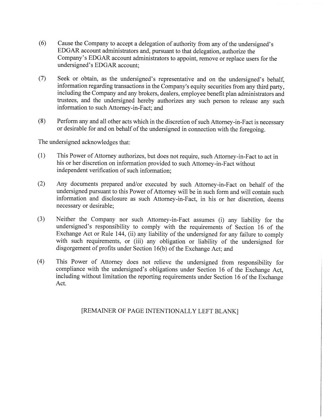 | 5. Vests in four equal installments over the four-year period beginning on February 15, 2027. |