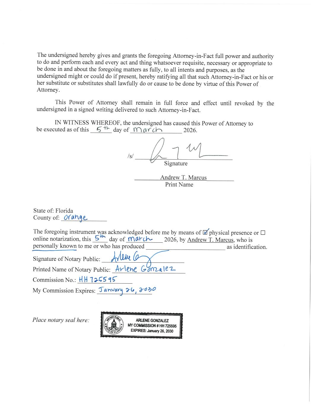 | /s/ Harold Herman, Attorney-In-Fact | 03/18/2026 | |